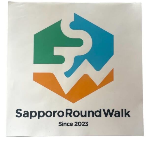 札幌市内の公園や緑道などを結ぶ140kmのルート「さっぽろラウンドウォーク」のオリジナルロゴのステッカーです。12cm×12cmのビッグサイズ。